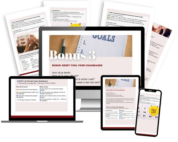 Ik wist niet dat het mogelijk was om mijn drukke periodes zó anders te ervaren. Normaal gesproken zit ik helemaal vast in een strak schema en had ik altijd het gevoel dat ik achter de feiten aanliep, maar dankzij deze methode heb ik eindelijk grip op mijn leven gekregen.
